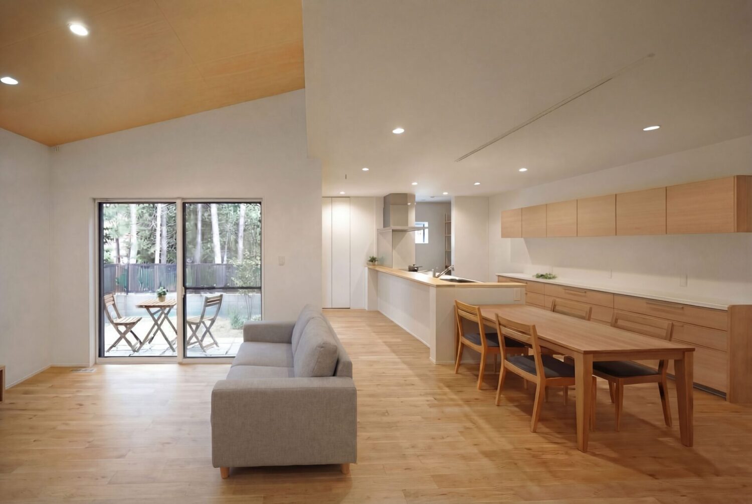 平面的な空間に生活空間があるので、家族同士のコミュニケーションも自然に生まれます。